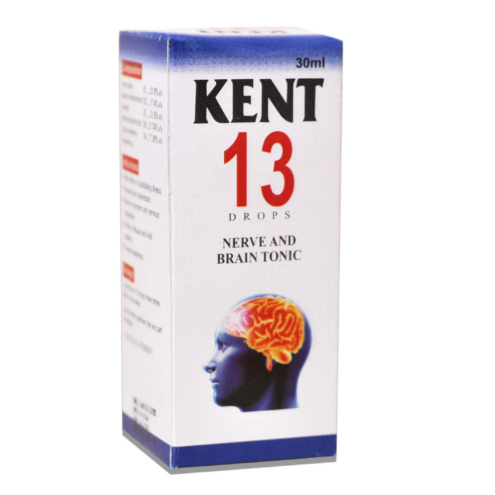 Kent 13 Drops is a homeopathic nerve and brain tonic designed to help with mental fatigue, stress, anxiety, and poor concentration. It supports brain function, improves memory, and enhances overall nervous system health.
